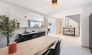 À Grand-Champ, petite ville dynamique tous services + collège, dotée d'un fort tissu associatif et idéalement située à 10 mn des portes de Vannes, cette charmante maison sur son jardin de 400 m² confortable et lumineuse, située au cœur d'un quartier très calme est une belle opportunité. cette maison offre une belle circulation avec des pièces de bonnes tailles et vous offre beaucoup d'espace. Elle se compose au rez de chaussée : d'une entrée, donnant sur - une cuisine aménagée ouverte sur la salle à manger équipée d'un poêle à granulé et le salon ouvert sur une terrasse avec pergola équipée d'un store banne électrique pour de belles soirées, terrasse très abritée et sans vis à vis, et d'un WC avec lave main. au 1er étage : 3 chambres, 1 salle de bain et une belle chambre parentale avec dressing et salle d'eau privative. Accolé à la maison un garage de 21 m² avec coin buanderie et évier. Le jardin coté rue accueille 2 places de parking et sur l'arrière un jardin fleuri avec en fond 2 cabanons de jardins. La maison est mitoyenne d'un coté et de l'autre par le garage, le quartier est plus que calme avec des voisins discrets. Vous êtes à quelques minutes du centre ville à pied. À visiter sans tarder. Les honoraires d'agence sont à la charge de l'acquéreur, soit 3,67% TTC du prix hors honoraires. Les informations sur les risques auxquels ce bien est exposé sont disponibles sur le site Géorisques : www. georisques. gouv. fr. Contactez Laure CENDRA Entrepreneur Individuel à Responsabilité Limitée, Agent commercial OptimHome (RSAC N°341 649 440 Greffe de VANNES) 07 71 75 18 19 (réf. 591115 ).