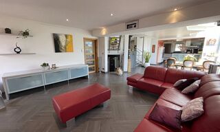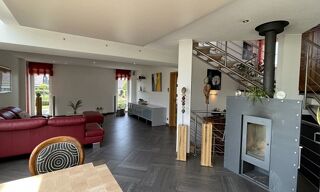 Au calme dans une impasse, une grande cour dallée nous invite dans cette maison de 195 m². Le RDC propose une pièce de vie confortable avec poêle à bois et véranda. La cuisine équipée ouverte avec îlot central de cuisson et coin repas présente un style contemporain et un agencement fonctionnel. On dispose aussi de 2 chambres dont l'une avec armoire murale ainsi que d'une salle d'eau équipée aux tons neutres. Le WC est séparé. À l'étage, un palier généreux dessert 3 chambres, l'une avec coin dressing, l'autre avec armoire murale et enfin la dernière avec accès vers le grenier. La salle de bain attrayante révèle une baignoire balnéo, un meuble avec double vasque et une douche, le WC étant indépendant. Le sous-sol se compose de 2 pièces aménagées, d'un garage pour 2 voitures avec porte sectionnelle, d'espaces de rangement et d'une buanderie avec accès vers l'extérieur. Le terrain de 17.18 ares clôturé et arboré nous livre une terrasse de 100 m² où l'on profitera aussi d'un coin verdure, de la piscine chauffée ou encore d'un jacuzzi. Pompe à chaleur avec plancher chauffant et refroidissant, climatisation réversible, poêle à bois, adoucisseur, portail motorisé. Cette maison parfaitement entretenue et soignée comble par son intérieur spacieux, lumineux et douillet. L'extérieur plaît tout autant de par sa situation agréable, tranquille tout en étant proche des commodités. À découvrir d'ores et déjà sur notre site par la visite virtuelle ! Honoraires inclus de 2.5% TTC à la charge de l'acquéreur. Prix hors honoraires 660 000 €. Classe énergie C, Classe climat B. Montant moyen estimé des dépenses annuelles d'énergie pour un usage standard, établi à partir des prix de l'énergie de l'année 2015 : 1600.00 €. Date de réalisation du DPE : 20-05-2021. Les informations sur les risques auxquels ce bien est exposé sont disponibles sur le site Géorisques : georisques. gouv. fr.