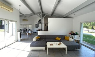 Iad France - Emmanuel Saunier vous propose : Coup de Coeur pour ce bien rare à Saubion Contemporaine de 197 m², offrant un cadre de vie unique alliant confort et sérénité,. Construite en 2015, cette propriété sur un terrain de 1 784 m² saura vous séduire par ses prestations de qualité et ses espaces généreux. Au rez-de-chaussée : - une entrée - un wc - un vaste salon séjour lumineux de 48 m² avec insert - une cuisine séparée, entièrement équipée, - une pièce supplémentaire pouvant servir de salle de jeu ou de bureau - 3 chambres - une salle d'eau avec wc A l'étage : - une suite parentale avec dressing et salle de bain - une mezzanine pouvant accueillir un 5ème espace de couchage À l'extérieur, un double-garages, un abri voitures et des places de parking vous garantissent un stationnement facile et sécurisé. Le jardin spacieux, arboré et sans vis à vis accueille une piscine équipée Abridéal, une vaste terrasse, une cuisine d'été, une terrasse couverte, un terrain de pétanque. Les prestations haut de gamme de cette demeure incluent le chauffage au sol via l'aérothermie, une isolation très performante, générant une faible consommation énergétique. La fibre optique, le portail automatisé, l'interphone, l'arrosage automatique sur forage s'ajoutent aux équipements de qualité. Située hors lotissement, proche des commodités et des écoles, cette propriété représente une opportunité rare sur le marché immobilier de Saubion. Contactez-nous dès maintenant pour organiser une visite, nous sommes disponibles 7 / 7 jours. Honoraires d'agence à la charge du vendeur. Information d'affichage énergétique sur ce bien : classe ENERGIE B indice 73 et classe CLIMAT A indice 2. Les informations sur les risques auxquels ce bien est exposé, y compris l'obligation légale de débroussaillement, sont disponibles sur le site Géorisques : La présente annonce immobilière a été rédigée sous la responsabilité éditoriale de M Emmanuel Saunier mandataire indépendant en immobilier (sans détention de fonds), agent commercial de la SAS I@D France immatriculé au RSAC de Mont-de-Marsan sous le numéro 880261110, titulaire de la carte de démarchage immobilier pour le compte de la société I@D France SAS.