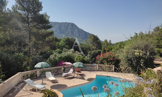 Secteur résidentiel calme et recherché, située dans un écrin naturel non loin des commodités, superbe maison aux allures Néo-provençales composée de 5 pièces principales d'environ 133 m² sur deux niveaux offrant de beaux volumes, comprenant au rez-de-chaussée, une entrée sur une belle pièce à vivre ensoleillée de 45 m² avec cheminée insert et poutres apparentes, ouvrant sur une terrasse et jardin, vue panoramique arborée sur le Mont Faron, cuisine américaine aménagée et équipée, grande buanderie de 25 m², une chambre parentale de plain-pied avec salle d'eau privative et WC intégré, à l'étage se situent trois belles chambres dont une accès sur un solarium, vue dégagée et arborée sans vis à vis, salle de bains avec baignoire et douche à l'italienne et WC séparé. Le tout implanté sur un terrain clos et arboré avec piscine de 3.480 m² inscrit en zone naturelle, la vraie campagne à la ville, bien réservé pour les amoureux de la nature. vous souhaitez estimer votre bien ? / .