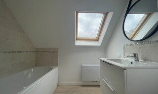 Maison semi individuelle entièrement rénovée avec du caractère comprenant cuisine équipée, salon / salle à mange, buanderie, 2 chambres avec dressings, salle de bains, WC. À l'étage 1 chambre, bureau, salle de bains, WC. Grenier aménageable de 50 m², terrasse, terrain.